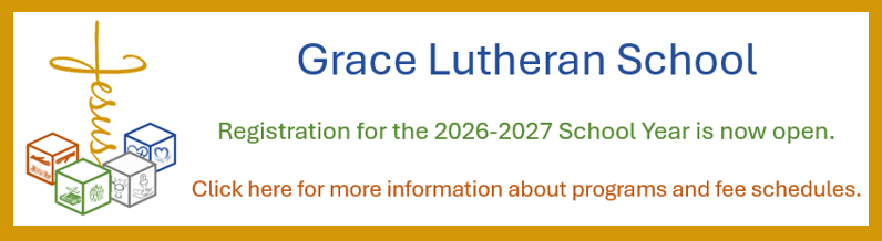A member of the Lutheran Church – Missouri Synod Built on the foundation of the cross of Jesus Christ, the families of Grace Lutheran Church and School are discipled through worship and study so that through fellowship and outreach we may disciple the community in which we live and work. Contact Info and Office Hours Mailing Address : 1007 Bacon Ranch Road, Killeen, Texas 76542 Church Office(254) 392-0717Mon.-Thurs. 9:00 – 2:00 School Office(254) 441-5519Mon.-Fri. 8:30 – 3:30