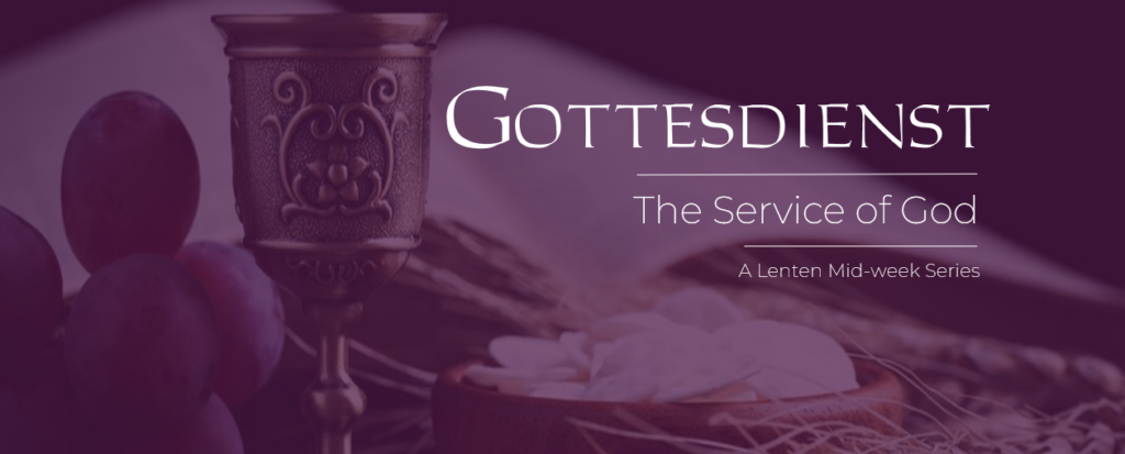 This year’s theme for Lent is entitled, “Gottesdienst.”  It is a German word which means, “the service (dienst) of God (Gott).”  Lent is a time of meditation and reflection on the “service of God” in Christ, that is, all that He has done to redeem His people and creation from sin and death.  Living this side of the cross, this reflection primarily happens when the people of God gather, in this case, on Wednesday evenings and during Holy Week and experience the “service of God” through Word and Sacrament ministry.  It is through these things that God serves His people by “calling, gathering and enlightening” them, forming them to be His people and equipping them for a response of service in this world.